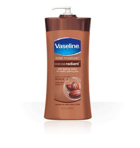 - Pack of three, 20.3-ounce bottles of Vaseline Total Moisture Cocoa Radiant Body Lotion